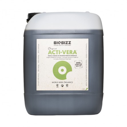 Acti-Vera de Bio Bizz es un fertilizante orgánico, 100% vegetal, que contiene extractos de la planta del aloe vera. Se trata de una fórmula que potencia la actividad del sistema inmunitario lo que incrementa la resistencia de la planta frente a diferentes agentes nocivos. Además, aumenta la capacidad de asimilación de nutrientes y de otras sustancias beneficiosas para la planta lo que favorece el aprovechamiento máximo del aporte nutricional que recibe la planta. Acti-Vera es un producto beneficioso para la planta durante las fases de crecimiento y de floración. Activa el desarrollo de la planta y la fortalece desde el interior lo que se refleja en el exterior con un aspecto sano y radiante.